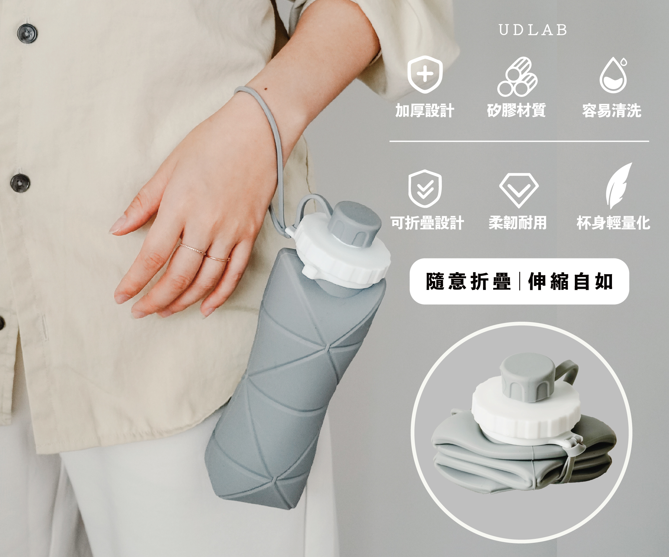 ✦ 軟膠設計,摔不爛、折疊方便