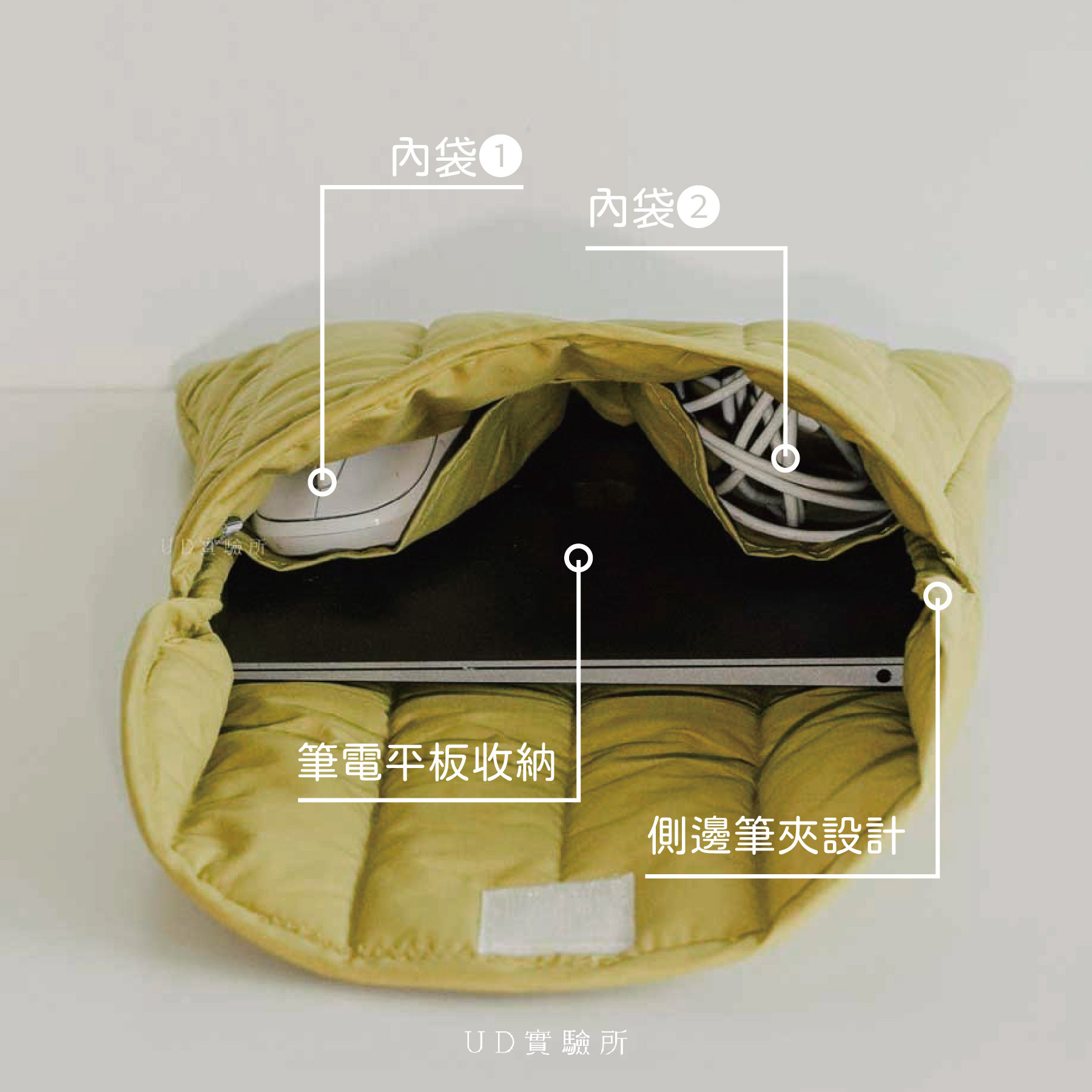 ✦ 有夾層!讓電源線、滑鼠等都能有個家