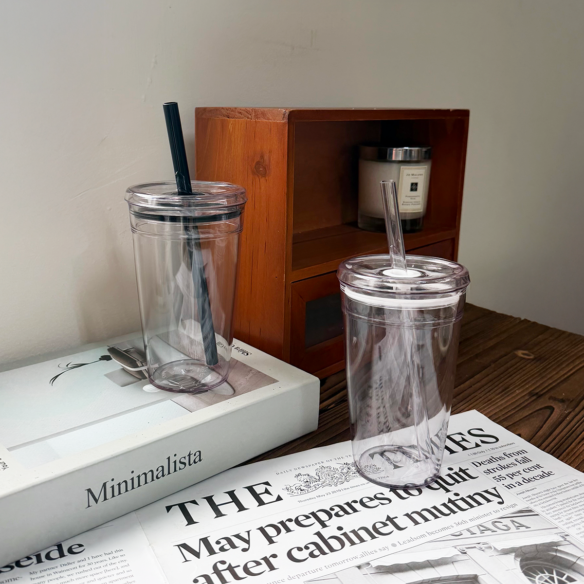 透明杯身+盒裝設計,貼上自己喜歡的貼紙或 LOGO,既好看又實用
