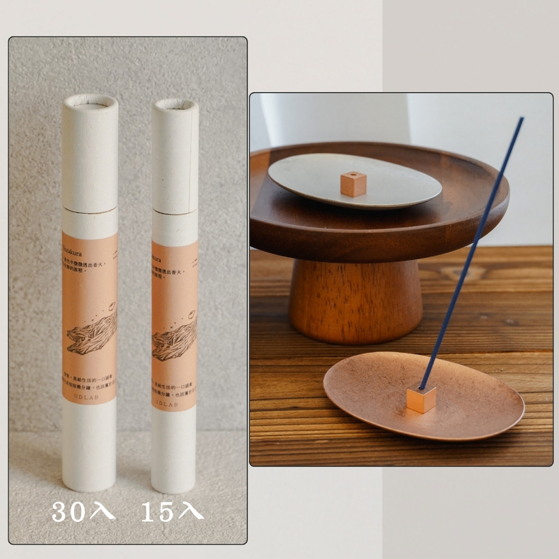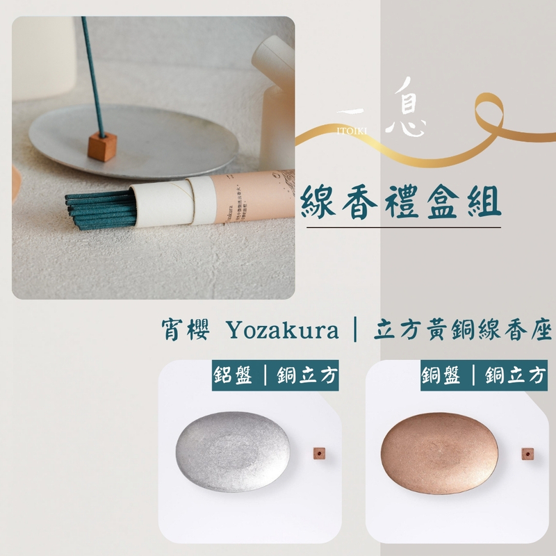 Hitoiki 一息線香 禮盒組|宵櫻 Yozakura × 立方黃銅線香座 15入/30入