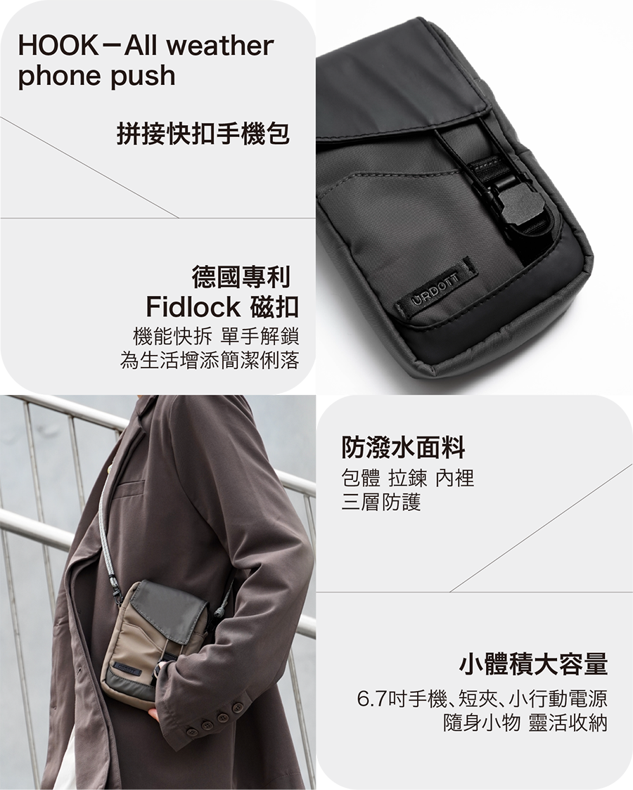 HOOK-All weather phone push 拼接快扣手機包 x1